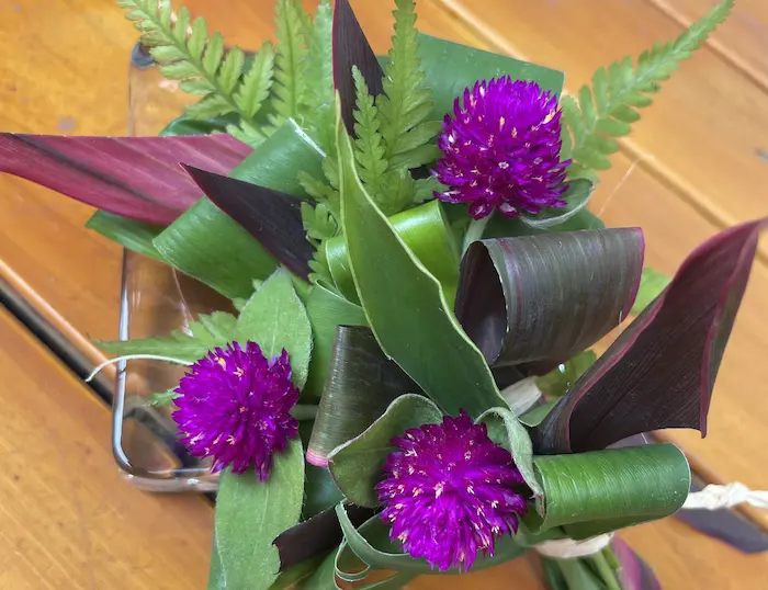 グリーンライブセンターの草花を使ってハワイの花飾りを編んでみよう