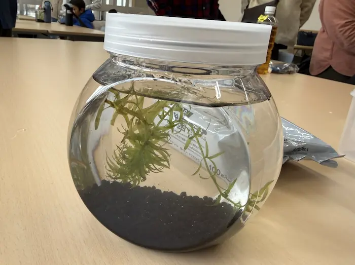 | 持ち物 | アクアリウムに使用するお好みのフタつきボトル(1000~1500ml程度) ボトルはプラスチック(PET)製またはガラス製でフタつきの物をご用意ください。100円ショップでもたくさんの種類が販売されています。ボトルの入手が難しい場合はご相談ください。 |